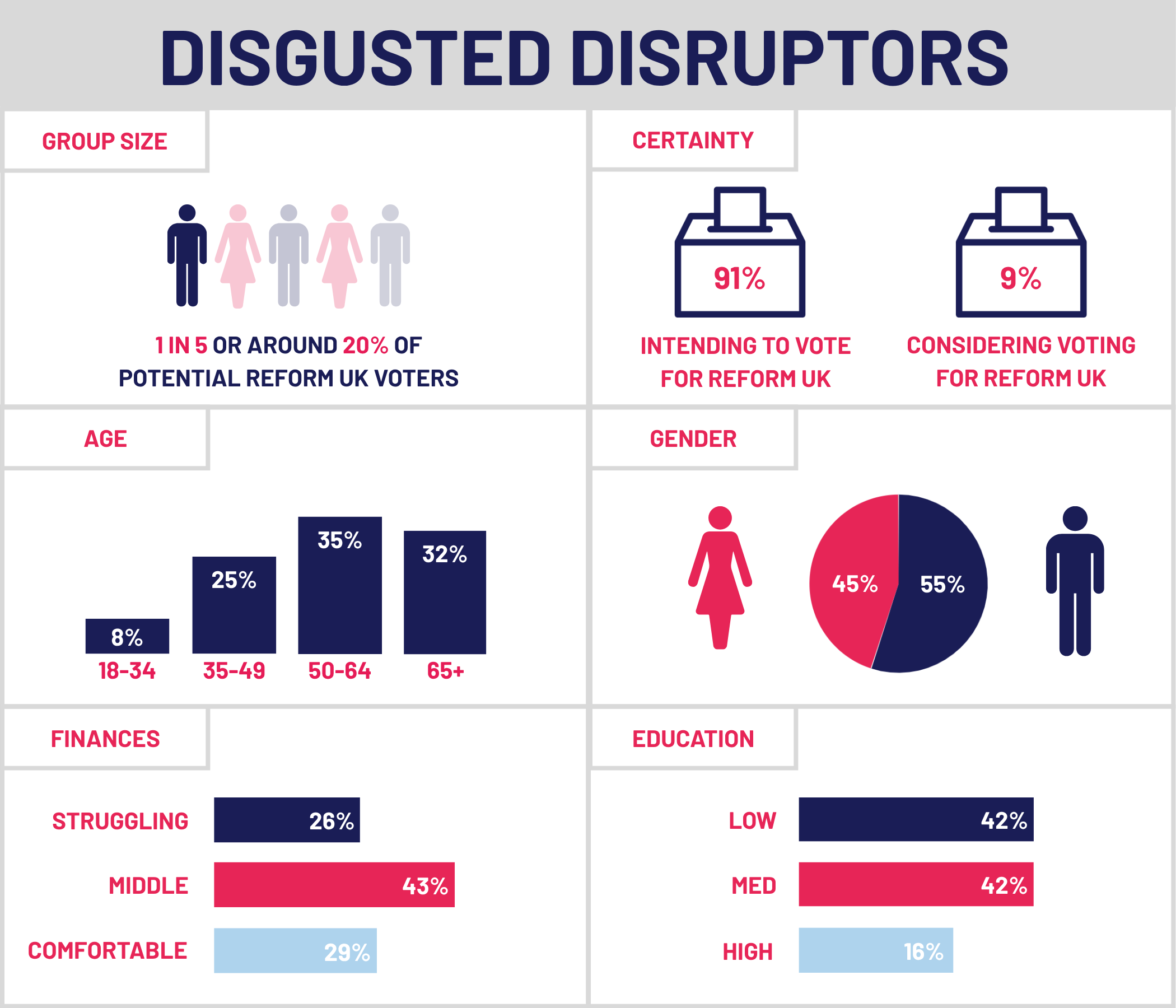 While they are united in emotion, potential Reform UK voters are fractured both in terms of their demographics and on the key issues that impact their families and the country.