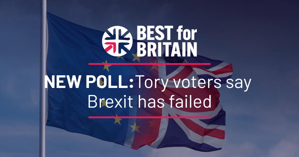Ahead of Kemi Badenoch’s closing speech at Conservative Party conference, polling by YouGov for Best for Britain reveals that people who say they intend to vote Conservative at the next general election are now more than twice as likely to consider Brexit a failure for the UK (46%) compared to a success (22%).